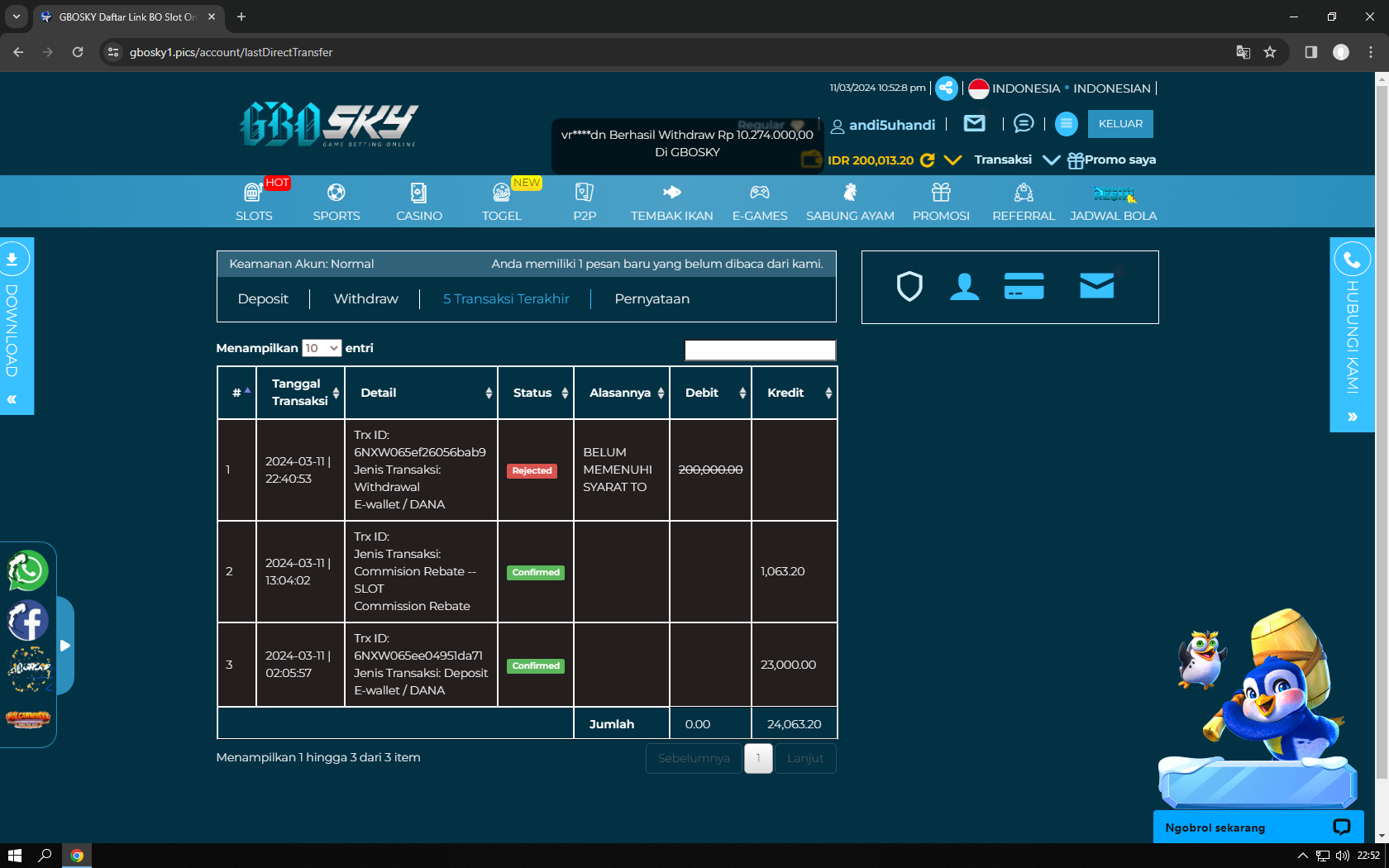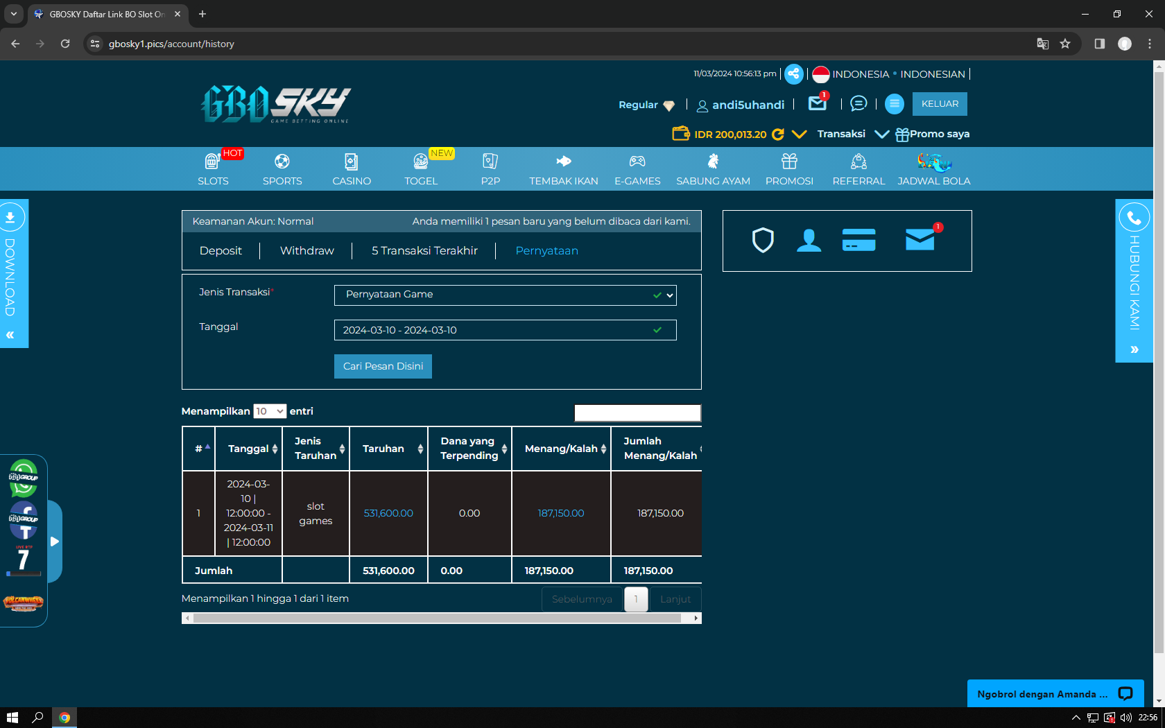 Semua Member Wajib bermain terlebih dahulu Hingga TO 50% Dari Saldo Deposit agar bisa Withdraw bosku ^^