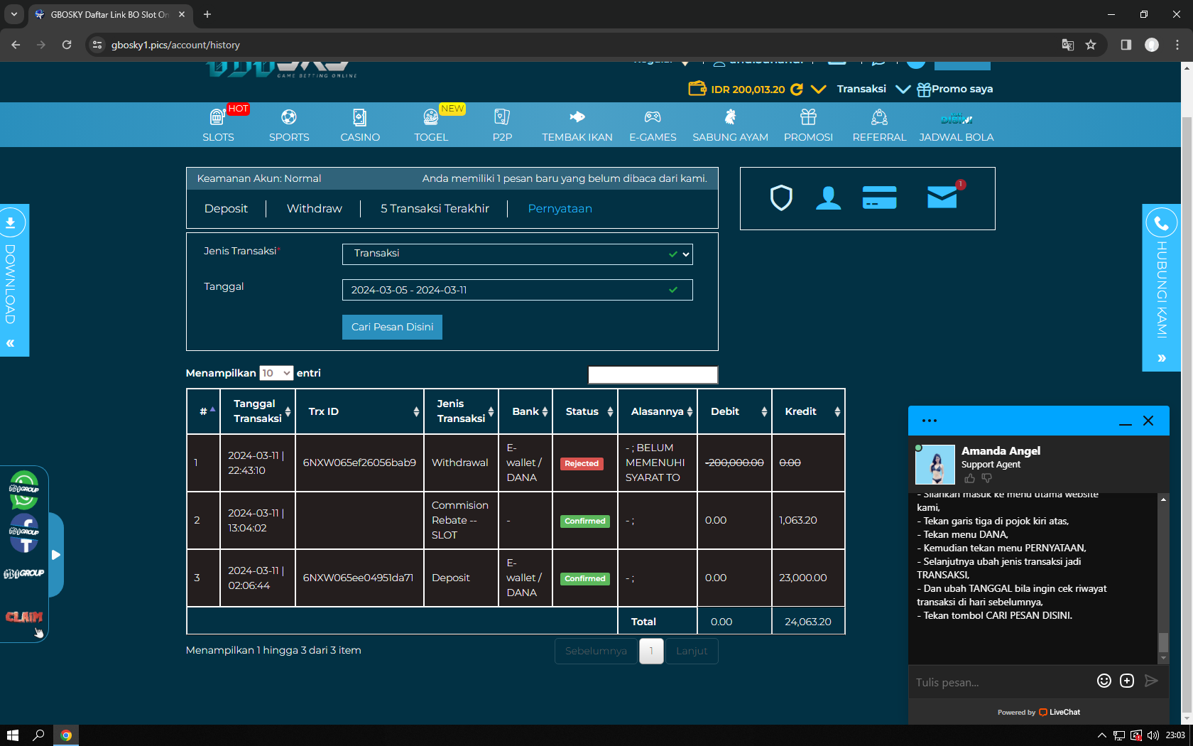 - Dan ubah TANGGAL bila ingin cek riwayat transaksi di hari sebelumnya,